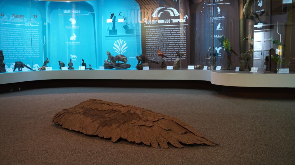 La exposición propone un diálogo con las colecciones y los espacios de Arqueología, Geología e Historia Natural del Centro de Museos de la Universidad de Caldas, como forma de cuestionar las narrativas que se generan sobre nuestra historia pasada, al igual que la historia reciente del país.