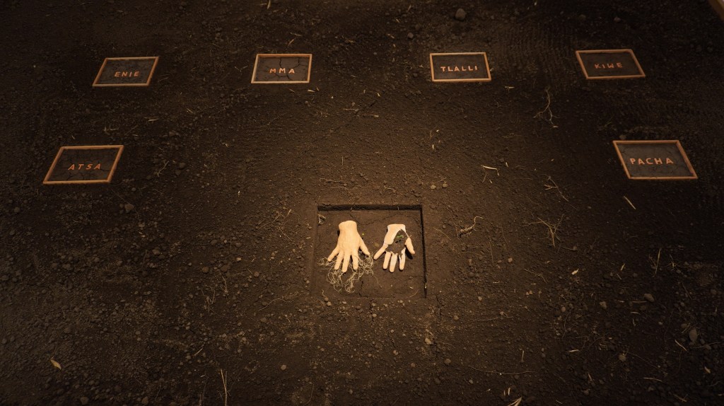El proyecto expositivo En Razón de las Tumbas explora las relaciones entre la tierra y el territorio como aspectos fundamentales de la identidad colectiva de Colombia utilizando el museo como un dispositivo de memoria.